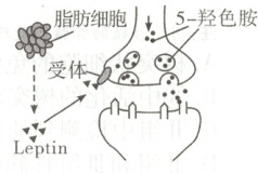 )A.脂肪细胞通过释放 Leptin 使 5 -羟色胺的合成减少属于体液调节