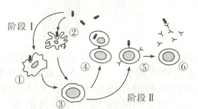 )A.阶段Ⅰ发生在感染早期,①和②为参与特异性免疫的淋巴细胞