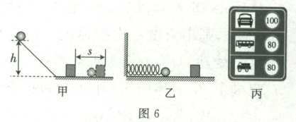 (3)图丙所示的交通标志牌显示了交通管理部门对不同车型在相关路段设定的最高$\underline{\hspace{2cm}}$。