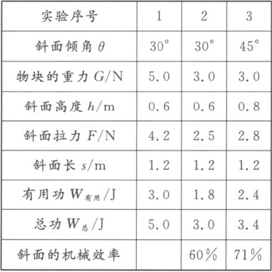 (3)根据表格中的数据可知:实验1中斜面的机械效率为$\underline{\hspace{2cm}}$%,实验2中物块所受的摩擦力为$\underline{\hspace{2cm}}$N。