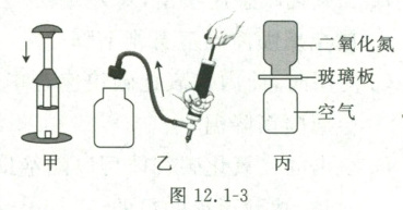 (3)图丙:抽出玻璃板,下瓶中出现红棕色二氧化氮气体,
