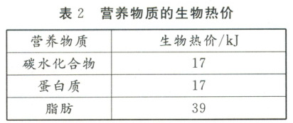 注:生物热价是指$1g$营养物质在人体内氧化产生的热量。