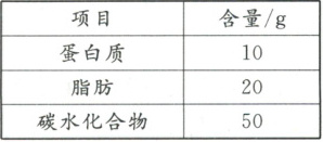 $kJ$能量才能满足身体的需要。(2)小明晚上只吃了一块质量为$80g$的方便面作为晚餐,该方便面各营养物质含量如下表所示。此晚餐能够提供