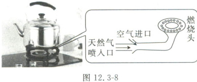 9. 图 12.3-8 是用燃气灶烧水的情境和该燃气灶灶头的示意图。