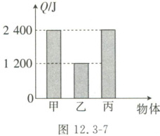 8. 甲物体的质量为 2 kg,乙、丙两物体的质量均为 1 kg,三个物体的温度均升高$1℃$,吸收的热量如图 12.3-7 所示。下列说法正确的是(