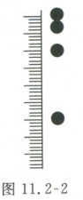 图 11.2 - 2 所示的是一个小球自由下落过程中的频闪照片(相机每隔 0.1s 曝光一次)。小球在下落的前一半路程中,重力做的功为$W_{1}$,功率为$P_{1}$;小球在后一半路程中,力做的功为$W_{2}$,功率为$P_{2}$。则$W_{1}$