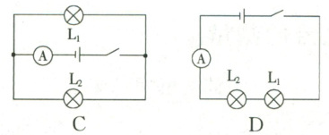 8. 下列电路中,闭合开关后,电流表能正确测量出通过灯泡 $L_2$ 的电流的是(