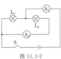 4. 如图 13.3-2 所示,开关 S 闭合时,灯 $L_1$ 和 $L_2$ 是