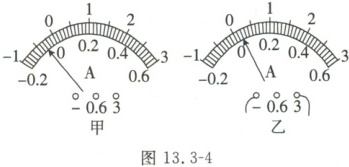 6. 小莹同学测量电流时,连接好电路,闭合开关,发现电流表指针向左偏转至图 13.3-4 甲所示位置,原因是电流表