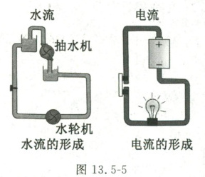 8.类比是重要的科学研究方法。关于图13.5-5所示的类比水流和电流的形成原因,下列说法不正确的是(