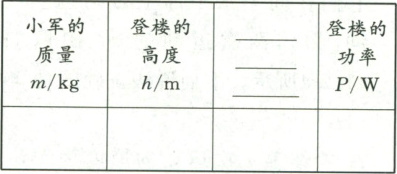 小军的质量 $m/ kg$;登楼的高度 $h/ m$;登楼的功率 $P/ W$