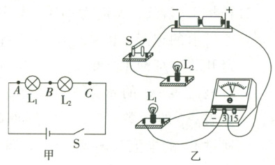(2)为测量$L_1$两端电压,请在图13.6-5乙中用笔画线代替导线将实物图连接完整。