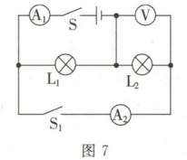 D.闭合开关 $S$、$S_1$ 时,若灯 $L_2$ 短路,灯 $L_1$ 仍然能继续工作