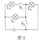 8.(多选)在如图 8所示的电路中,当开关 $S_1$、$S_2$ 断开或闭合时,下列说法正确的是(