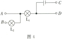 5. 如图 4 所示,A、B、C、D 是四个接线柱,要使灯$L_1$、$L_2$串联,应把