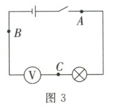 4. 小明在使用电压表时错误将它串联进了电路中,如图 3 所示。闭合开关后电压表