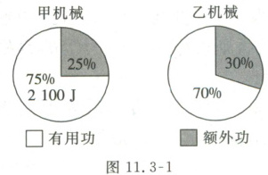 3. 图11.3-1所示的是甲、乙两种机械某次做功的情况,它们做的有用功均为$2100 J$,则机械效率较高的是