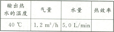 (下表中的“气量”是指燃气热水器正常工作1h消耗天然气的体积,“水量”是指燃气热水器正常工作1min流出热水的体积。)