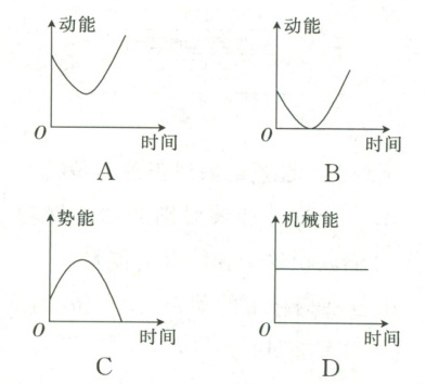 7. (多选)运动会上,小敏同学掷铅球。若不计空气阻力,铅球从离手到落地瞬间的过程中,其动能、势能和机械能的大小分别随时间变化的图像正确的是(