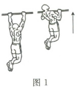 3. 如图1所示,小明每次做引体向上,身体重心都上升$0.7 m$,他的质量为$60$$ kg$,则小明做一次引体向上需克服重力做功$\underline{\hspace{2cm}}$J。如果小明$1 min$完成$10$个引体向上,那么他的功率是$\underline{\hspace{2cm}}$W。($g$取$10$$ N/kg$)