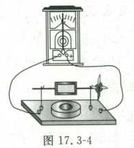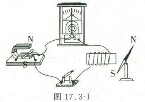 2. 在水平桌面上按照图17.3-1所示装置进行实验,闭合开关,使铜棒在水平金属轨道上快速左右运动,观察到灵敏电流计的指针发生偏转,这一现象与