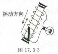4. 小明自制了图17.3-3所示的实验装置,将带绝缘层的导线绕在塑料管外,导线两端连接着小灯泡,形成闭合电路,管内封闭一个强磁体。沿图中所示方向来回快速摇动装置,小灯泡