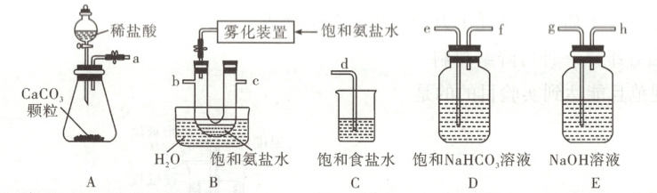(1)从A~E中选择合适的仪器制备NaHCO₃,正确的连接顺序是