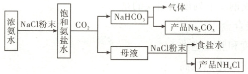 在侯氏制碱法中,由于${NH_{3}}$极易溶于水,而${CO_{2}}$的溶解度较小,需要先向饱和食盐水中通入${NH_{3}}$,或向浓氨水中加入${NaCl}$粉末制成饱和氨盐水,再通入${CO_{2}}$,即可制得${NaHCO_{3}}$沉淀,将${NaHCO_{3}}$过滤后再经热分解制得纯碱。