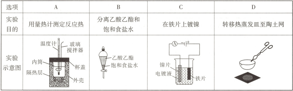 命题意图 本题以实验装置与目的匹配为情境,考查实验设计的合理性,体现了“科学探究与创新意识”等化学学科核心素养。