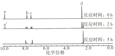 (答出$2$条即可)。(2)根据反应液的核磁共振氢谱(已去除溶剂$H$的吸收峰,谱图中无羧基$H$的吸收峰)监测反应进程如下图。已知峰面积比$a:b:c:d = 1:2:2:3$,$a:a' = 2:1$。反应$2\ h$时,对甲基苯甲醛转化率约为