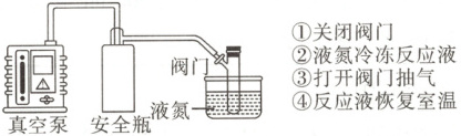 (5)用同位素示踪法确定产物羧基$O$的来源。丙酮易挥发,为保证$^{18}O_{2}$气氛,通$^{18}O_{2}$前,需先使用“循环冷冻脱气法”排出装置中(空气中和溶剂中)的$^{16}O_{2}$,操作顺序为:①→②→