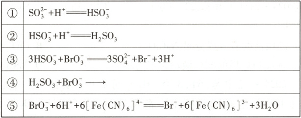 B.反应④:$ {3H_{2}SO_{3} + BrO^{-}_{3}\xlongequal{}3SO^{2-}_{4} + Br^{-} + 6H^{+}} $