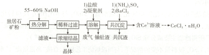 命题意图本题以独居石制备${CeCl_{3}· nH_{2}O}$的工艺流程为素材,涉及影响反应速率的因素、化学方程式书写、离子浓度计算等知识,体现了“宏观辨识与微观探析”“变化观念与平衡思想”化学学科核心素养。