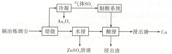 4. [2025·甘肃卷,16T,15分]研究人员设计了一种从铜冶炼烟尘(主要含S、As₂O₃及Cu、Zn、Pb的硫酸盐)中高效回收砷、铜、锌和铅的绿色工艺,部分流程如下: