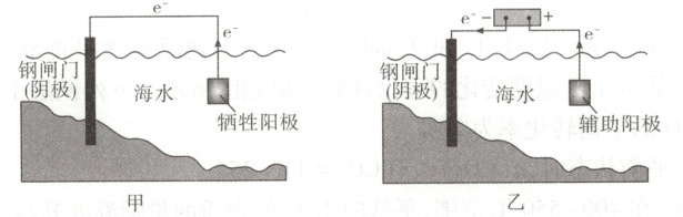 D.图甲、图乙中,当钢闸门表面的腐蚀电流为零时,钢闸门、阳极均不发生化学反应
