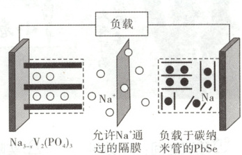 13. [2024·广西卷,9T,3 分]某新型钠离子二次电池(如图)用溶解了 NaPF₆的二甲氧基乙烷作电解质溶液。放电时嵌入 PbSe 中的 Na 变成 Na⁺后脱嵌。下列说法错误的是(