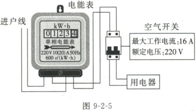 11.如图9-2-5所示的家庭电路,允许通过的最大电流不能超过