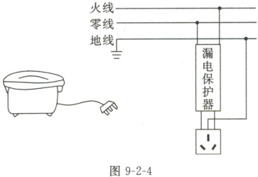 (1)如图9-2-4所示,将漏电保护器接入用电器的两根输电线。如果用电器的金属外壳发生了漏电故障,通过漏电保护器的电流$I_{火线}$