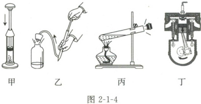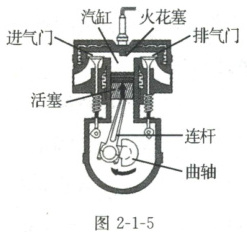 10. 图 2-1-5 是四冲程汽油机的剖面图。下列关于其四个冲程的描述正确的是(