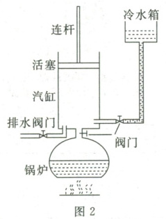 图2是17世纪一种原始热机的示意图,以下是它对外做一次功的简要概述: