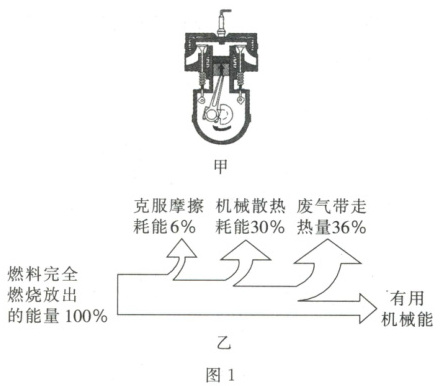 5.(多选)汽车是现代生活中一种常见的交通工具,图1甲、乙分别是某汽油机的某一冲程及能量流向图。下列有关说法正确的是(