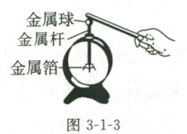 9. 验电器是检测物体是否带电的仪器。如图3-1-3所示,原本不带电的金属箔,接触后带了负电荷,则接触瞬间,电流从金属