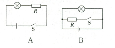 (5)小明乘车来到商场地下车库,发现了一种车位占用提醒的装置,它的原理图如图3-4-6所示,虚线框内的元件一个是灯泡,另一个是保护电路的电阻,当开关$S$断开时,$a$和$b$是