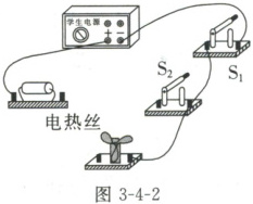 4. 家中的电吹风可以吹冷风(自然风),也可以吹热风。探究小组设计了电吹风的模拟电路,并连接了部分导线,如图3-4-2所示。