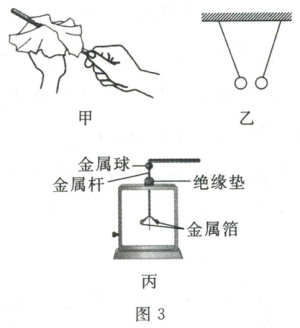 (1)图 3 甲中用丝绸摩擦过的玻璃棒会带上