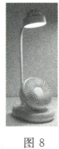 9. (多选)如图 8 所示,这是一款迷你台灯扇,它既可以照明又可以吹风且互不影响。由于扇叶转动时和空气之间发生摩擦起电现象,长时间使用后扇叶会吸附很多灰尘。下列说法错误的是(