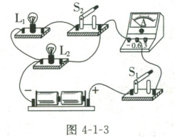 8.如图4-1-3所示,闭合开关$S_1$、$S_2$,电流表、灯泡$L_1$和$L_2$均能正常工作。此