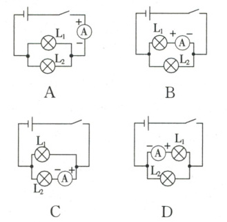 7.下列电路中闭合开关后能直接测量通过灯$L_1$的电流的是(