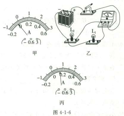 (2)连接的电路如图4-1-6乙所示,则电流表测的是通过灯