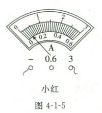 10.小华、小海、小红三名同学在做“用电流表测量电流”的分组实验中,闭合开关前,他们的电流表指针均指在零刻度线处。当闭合开关试触时,发现电流表指针摆动分别出现了如图4-1-5所示的三种情况,请分析他们在电流表的使用上分别存在什么问题。